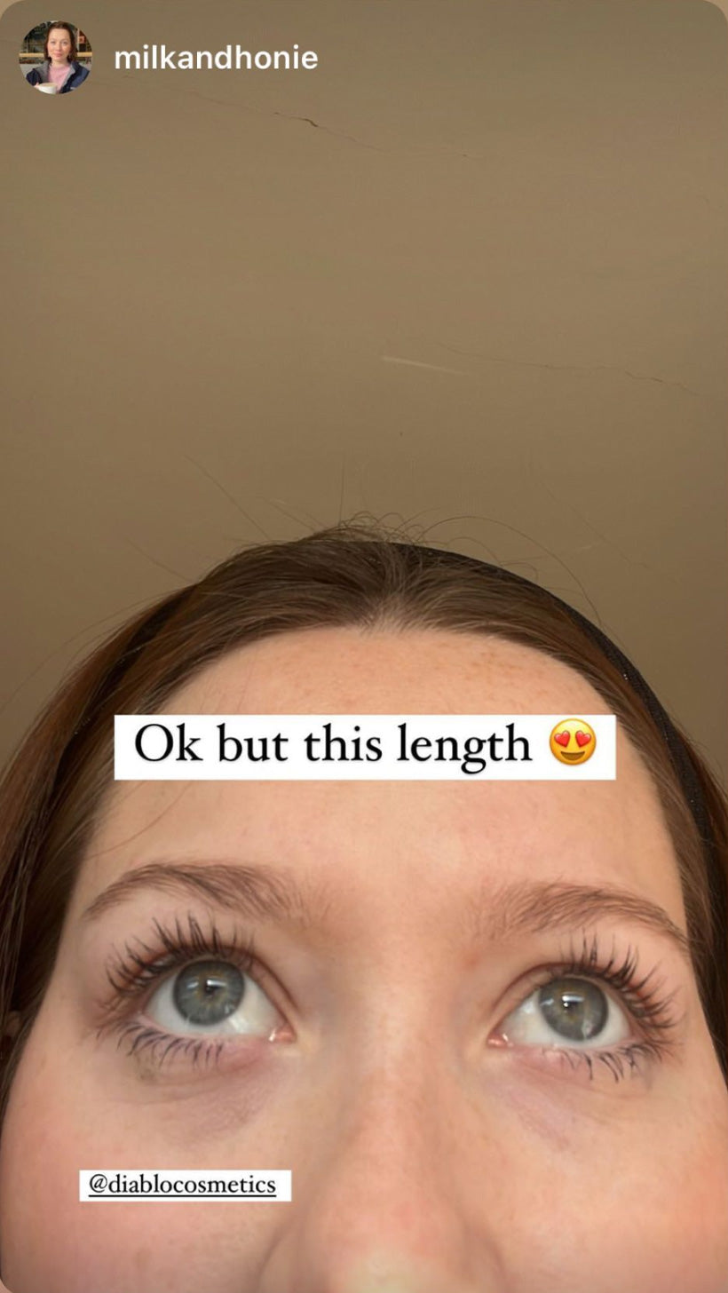 Apply one thin line of Diablo Eyelash Serum along your lash line.